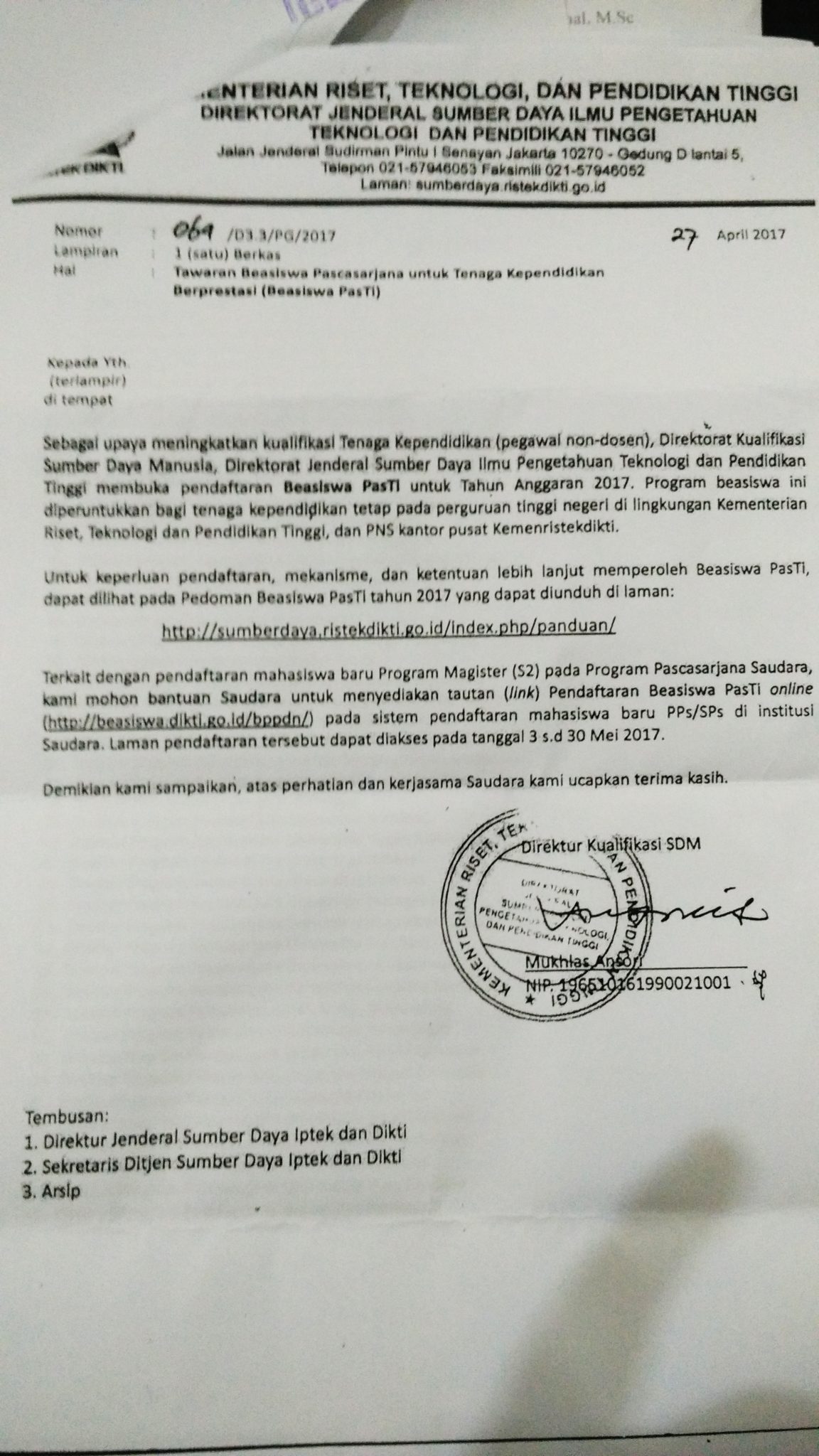 (Pascasarjana untuk Tenaga Kependidikan Berprestasi)