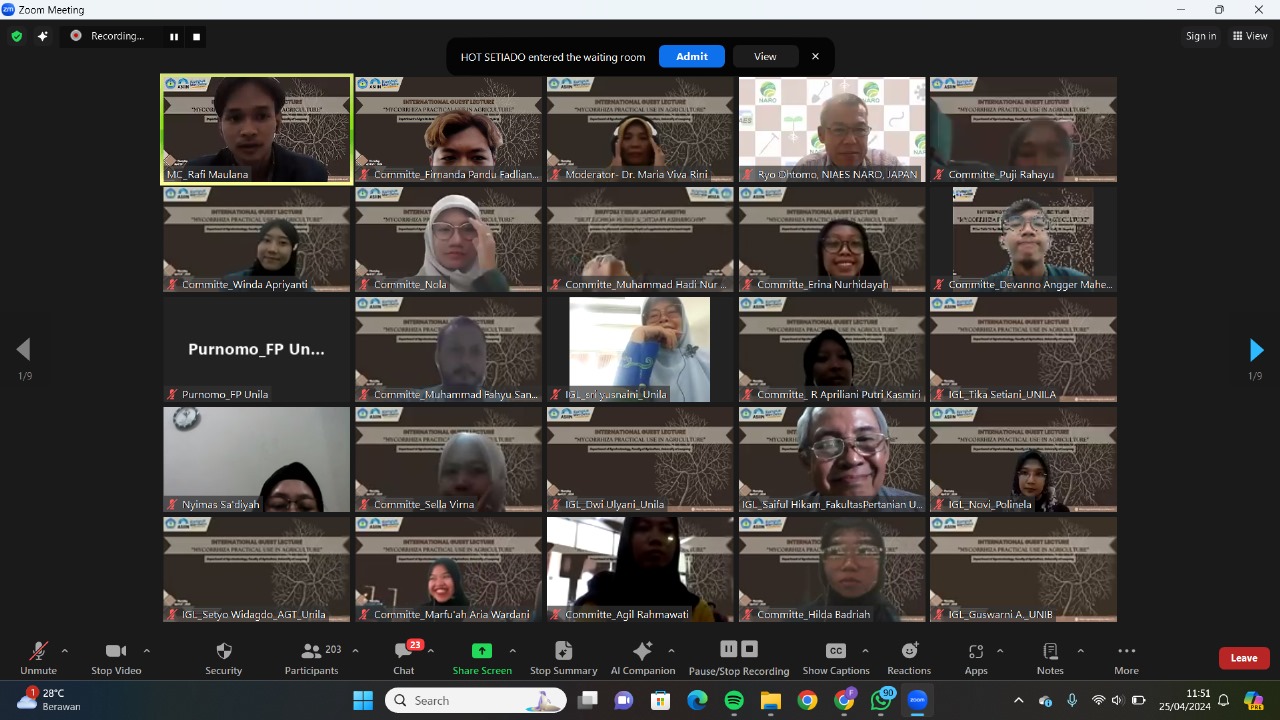 (Unila): Jurusan Agroteknologi, Fakultas Pertanian (FP) Universitas Lampung (Unila) mengadakan International Guest Lecture (IGL), Kamis, 25 April 2024.