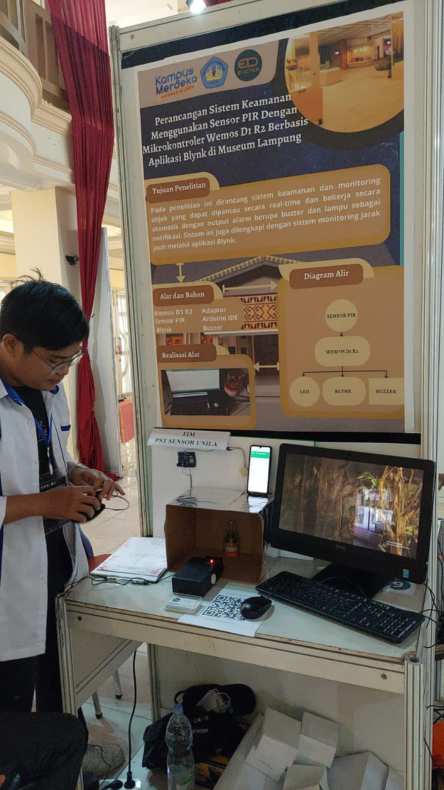 Sementara tim PST Sensor melakukan perancangan sistem keamanan menggunakan sensor PIR dengan mikrokontroler wemos D1 R2 berbasis aplikasi Blynk di Museum Lampung yang dimaksudkan sebagai otomasi pemantauan terhadap benda bersejarah berharga, melalui sensor dengan alarm dan bisa dipantau dari jarak jauh.