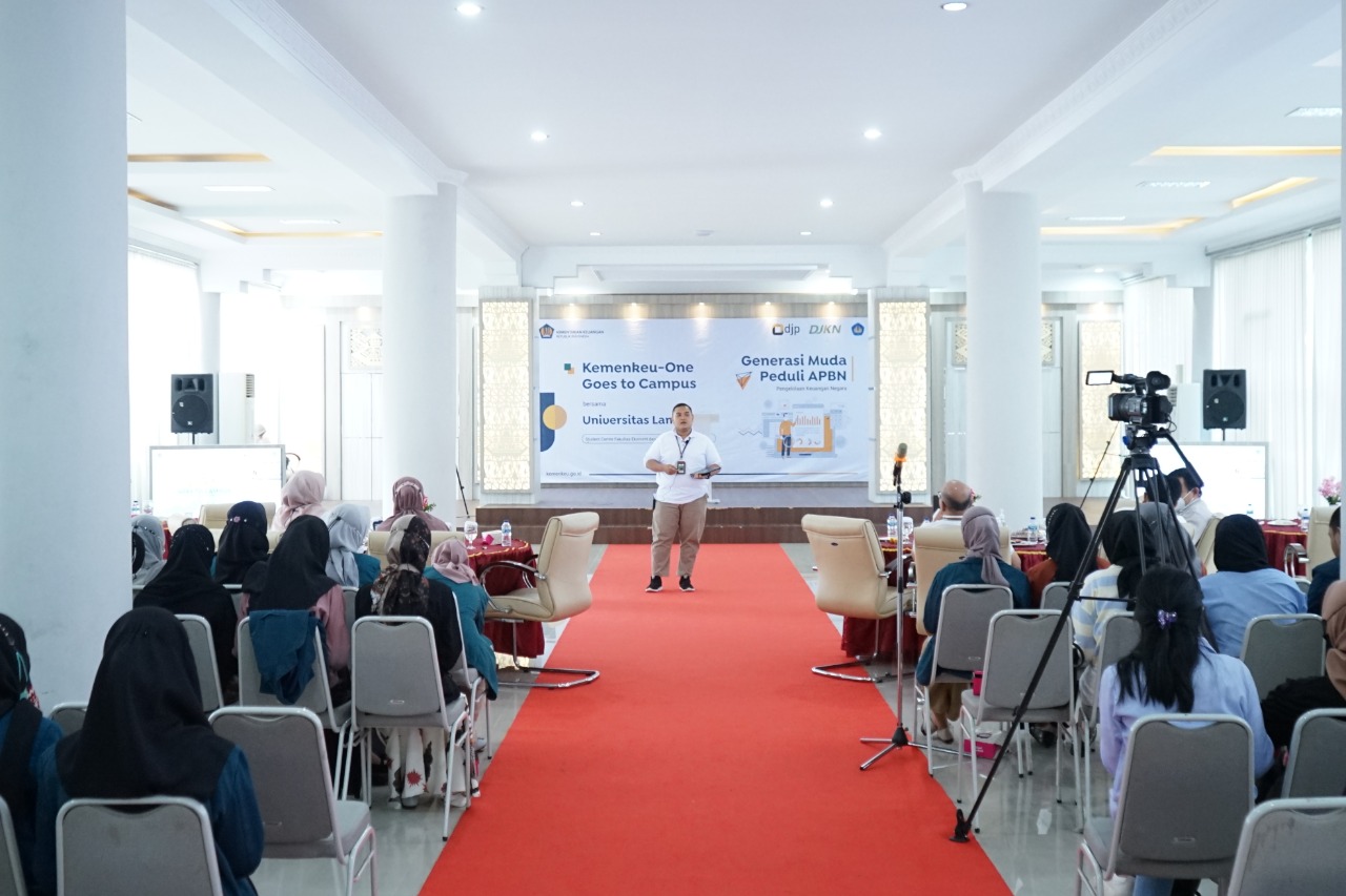 (Unila): Universitas Lampung (Unila) bersama Kantor Wilayah Direktorat Jenderal Pajak (Kanwil DJP) dan Direktorat Jenderal Kekayaan Negara (Kanwil DJKN) menggelar acara Kemenkeu-One Goes to Campus.
