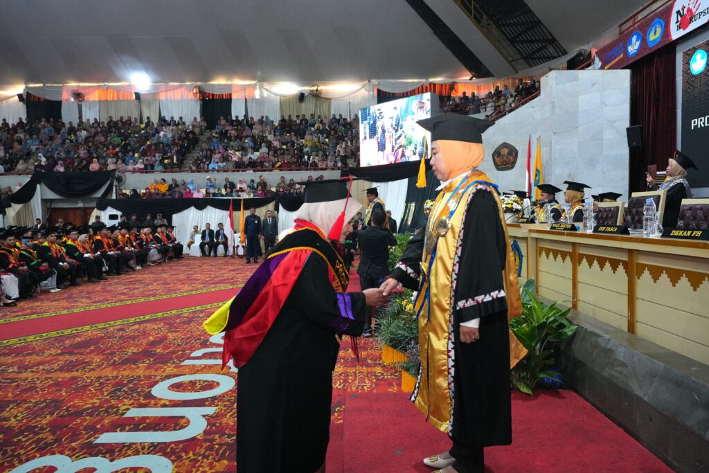 (Unila): Perjalanan panjang menempuh pendidikan magister Program Studi (Prodi) Pendidikan Bahasa Inggris berhasil ditorehkan Ervina Agustin, salah satu lulusan terbaik Universitas Lampung (Unila). Ia dinobatkan sebagai wisudawan terbaik satu program magister tingkat universitas dengan total skor 353 pada wisuda periode VIII pada 23 Agustus 2025.