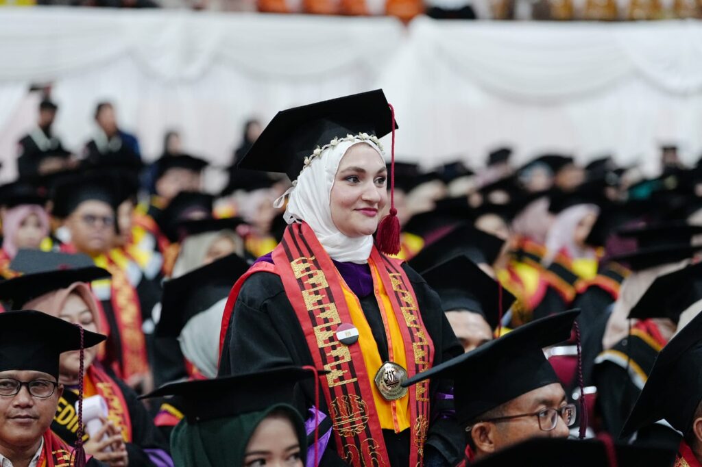 Salah satu wisudawan yang menarik perhatian adalah Sondos Ali Galal Elfouly, mahasiswi asal Mesir yang berhasil merampungkan studi magister di Program Studi S-2 Ilmu Pengetahuan Sosial (IPS) Fakultas Keguruan dan Ilmu Pendidikan (FKIP).