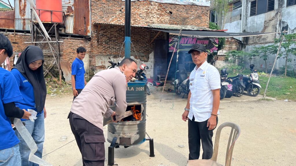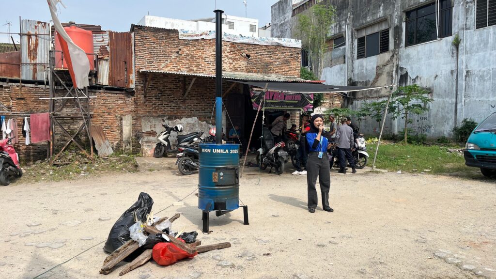 (Unila): Mahasiswa Kuliah Kerja Nyata (KKN) Universitas Lampung 2025 menghadirkan inovasi pengelolaan sampah berupa alat pembakar sampah minim asap di Kelurahan Teluk Betung.