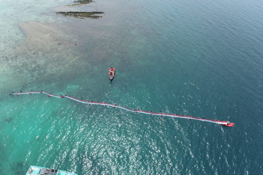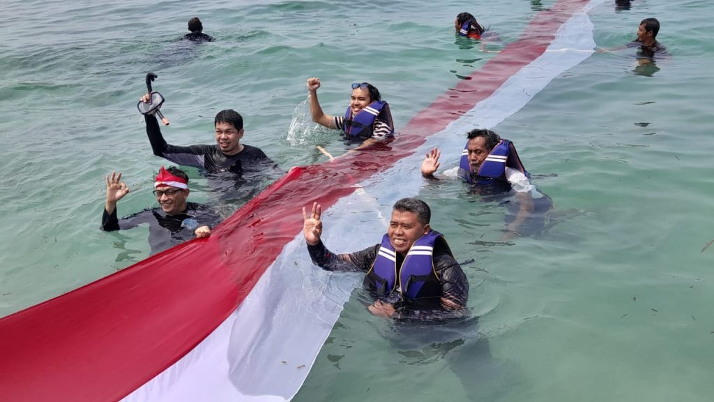 (Unila): Klub Selam Anemon Fakultas Matematika dan Ilmu Pengetahuan Alam (FMIPA) Universitas Lampung (Unila) kembali sukses membentangkan Bendera Merah Putih di pantai Dusun Jelarangan, Desa Pulau Pahawang, Kabupaten Pesawaran, pada 17 Agustus 2024.
