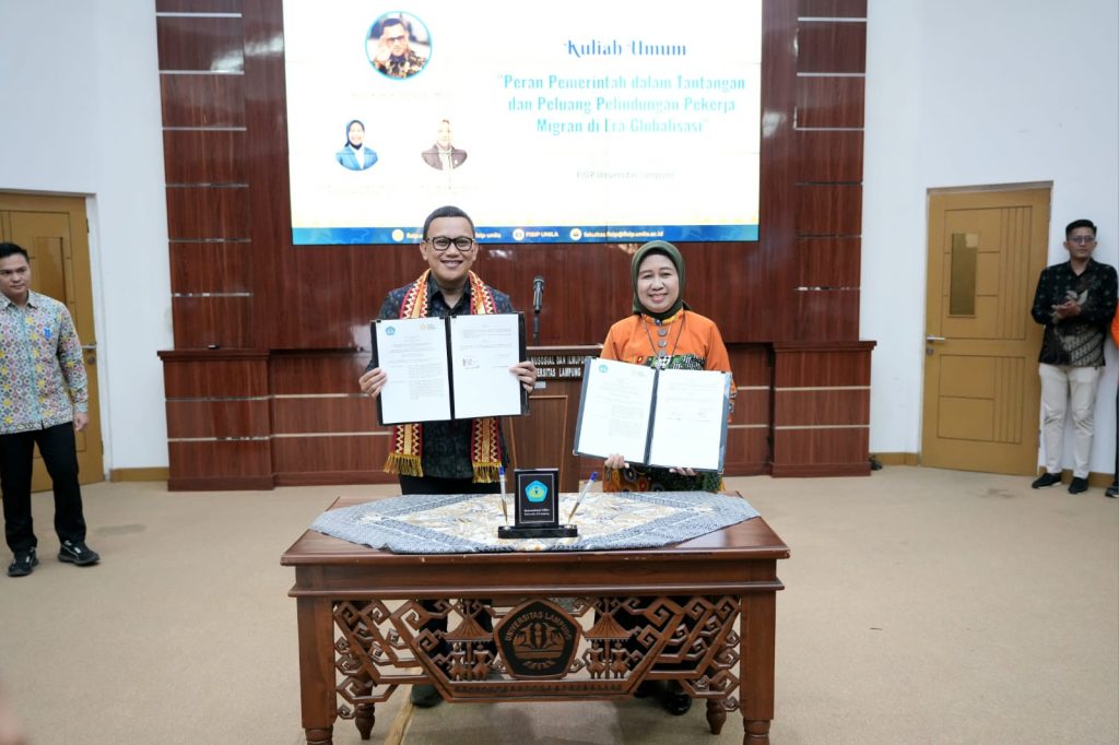 Selain itu, dilakukan pula penandatanganan memorandum of understanding (MoU) antara Unila dan Kementerian Pelindungan Pekerja Migran Indonesia.