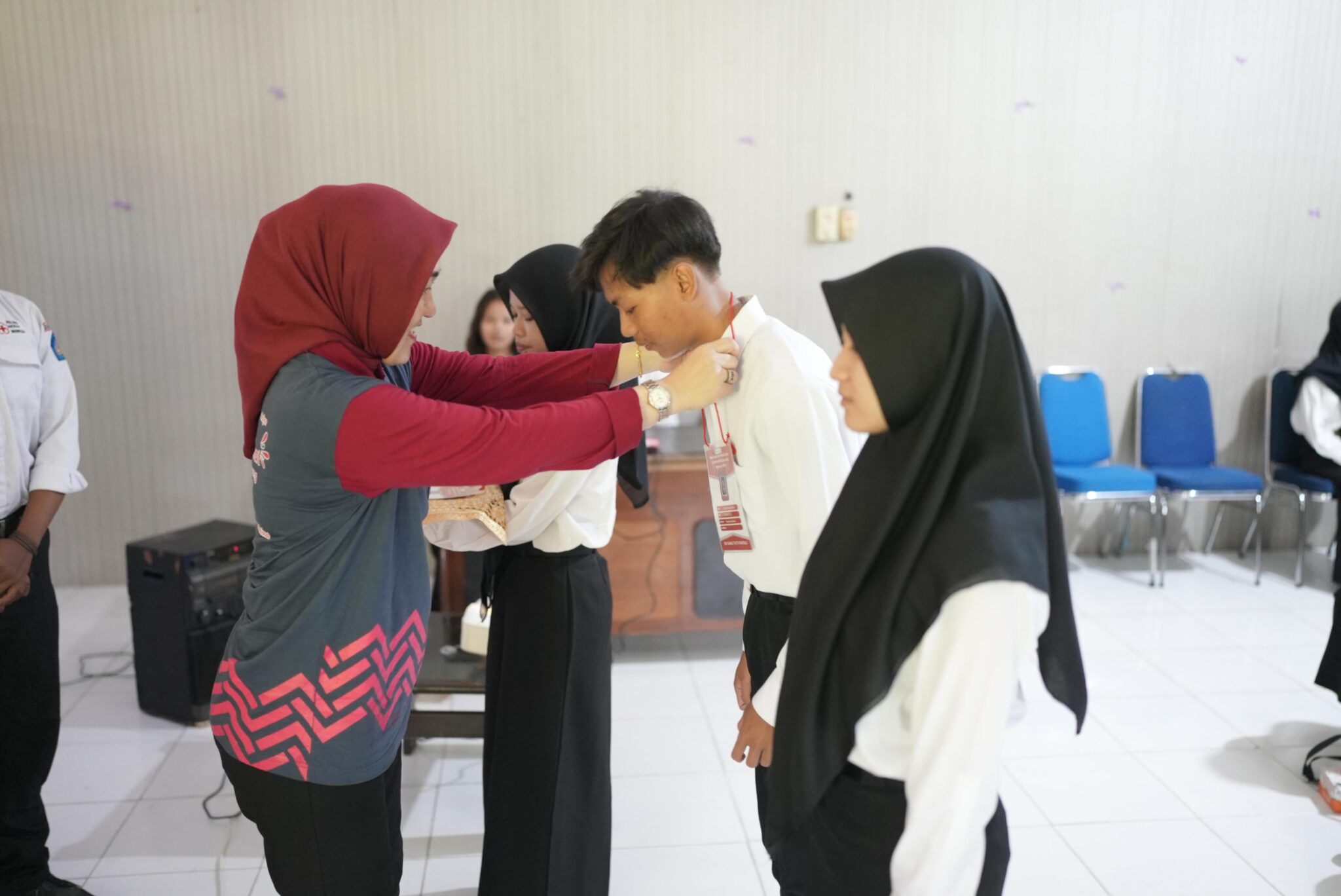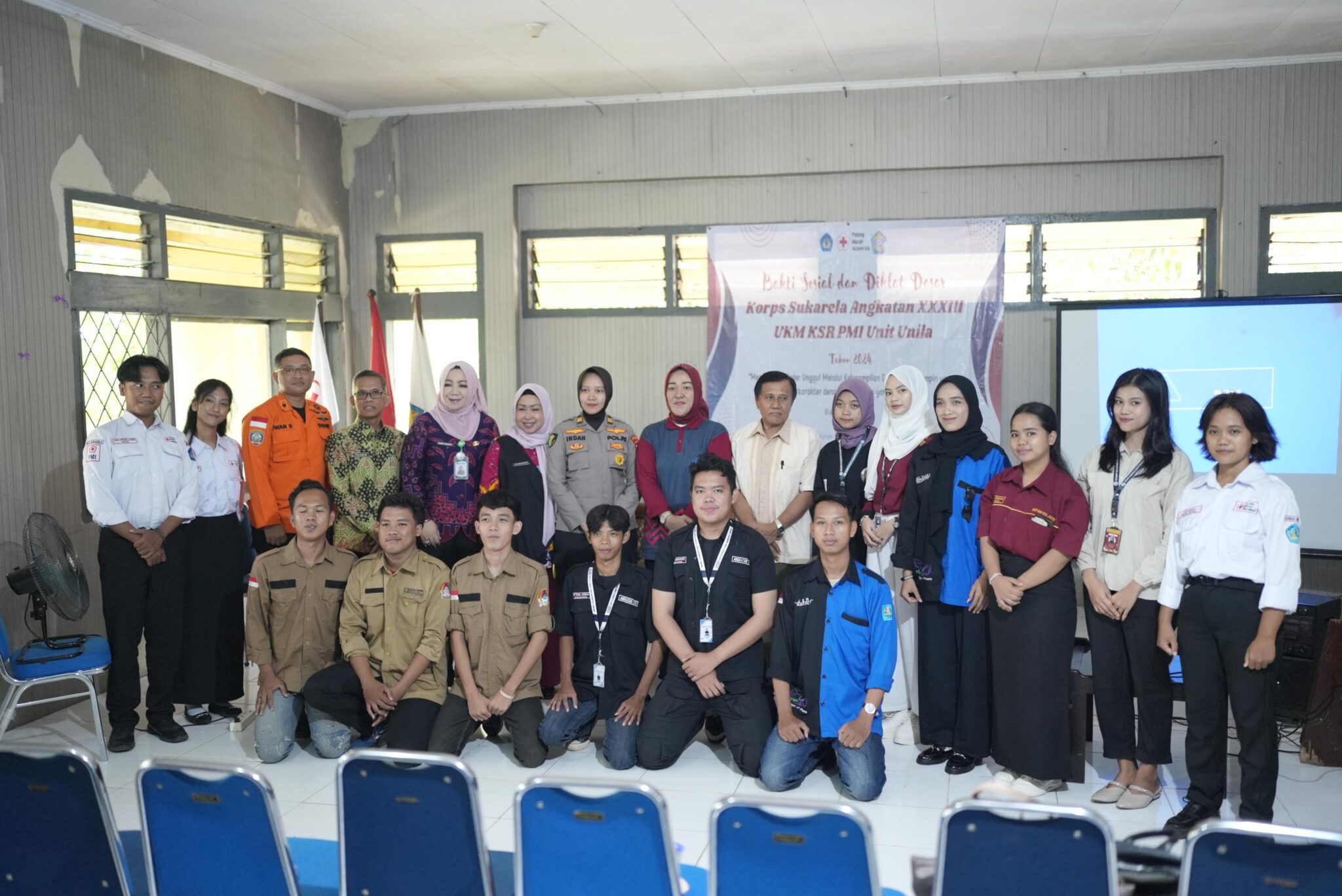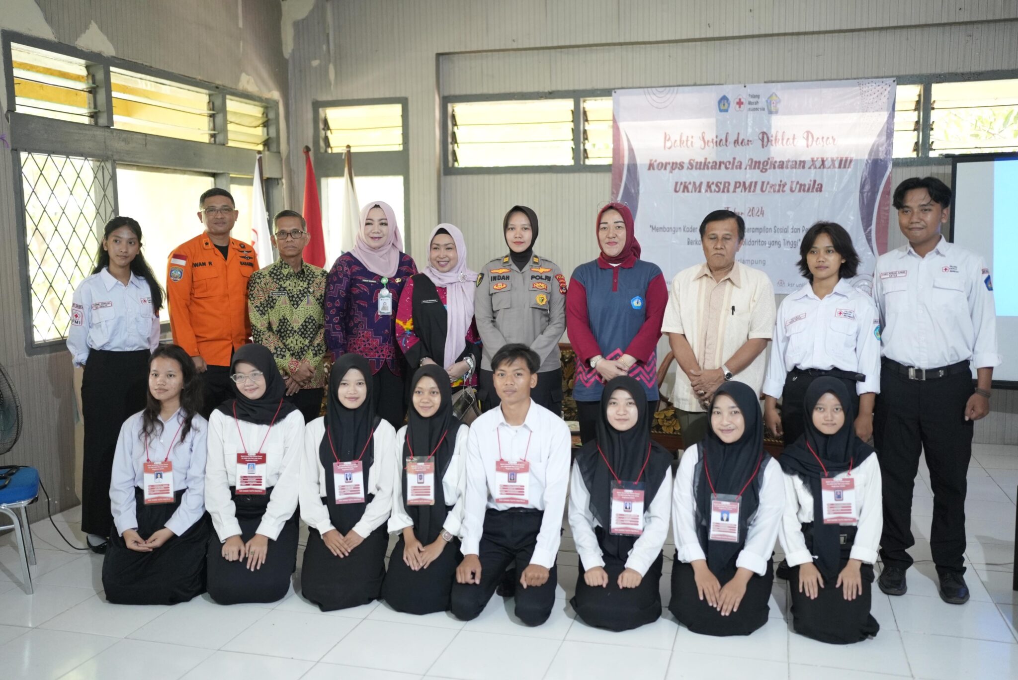 (Unila): Unit Kegiatan Mahasiswa (UKM) Korps Suka Rela (KSR) PMI Unit Universitas Lampung (Unila) menyelenggarakan diklat dan bakti sosial Korps Sukarela angkatan XXXIII 2024 di ruang sidang kemahasiswaan lantai dua Unila, Jumat, 19 April 2024.