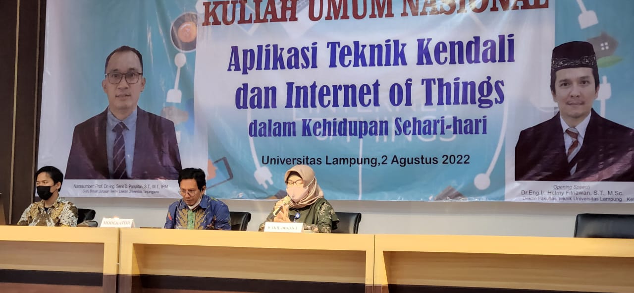 (Unila): Jurusan Teknik Elektro Universitas Lampung (Unila) menggelar Kuliah Umum Nasional bertajuk “Aplikasi Teknik Kendali dan Internet of Things dalam Kehidupan Sehari-hari.