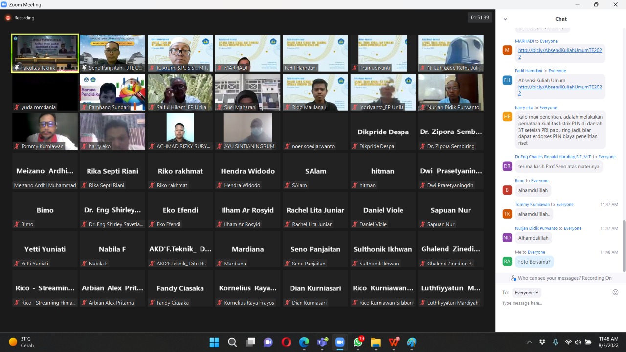 Kegiatan yang digelar hibrid dalam rangka membuka wawasan teknologi mutakhir ini dilaksanakan di ruang Aula lantai dua Gedung A Fakultas Teknik (FT) Universitas Lampung, Selasa, 2 Agustus 2022.