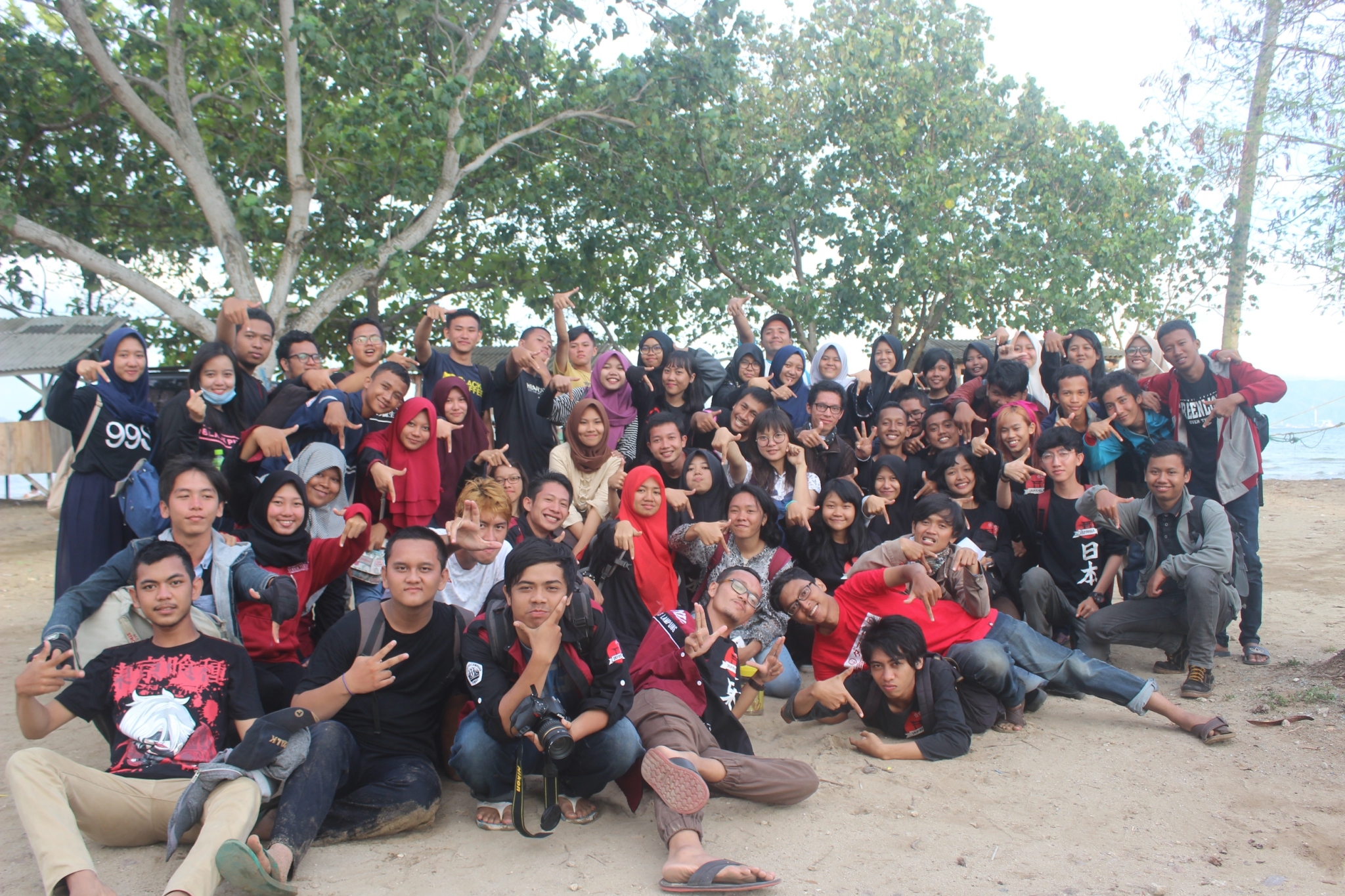(Unila): Japanila Universitas Lampung melantik anggota baru generasi ketiga di Pantai Queen Arta, Lampung, Minggu (12/11/2017).