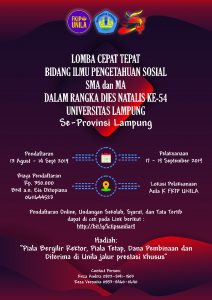 Lomba Cepat Tepat Bidang Ilmu Pengetahuan Sosial (Ekonomi, Geografi, Sejarah dan Sosiologi) Tingkat SMA dan MA se-Provinsi Lampung dalam Rangka Dies Natalis Ke-54 Universitas Lampung.