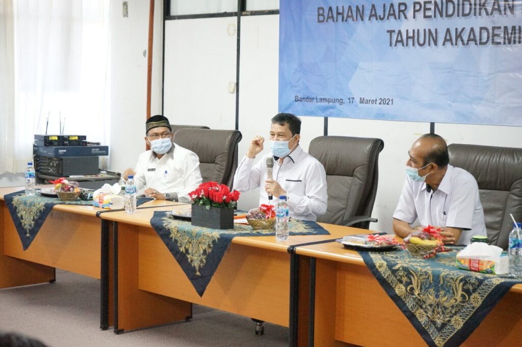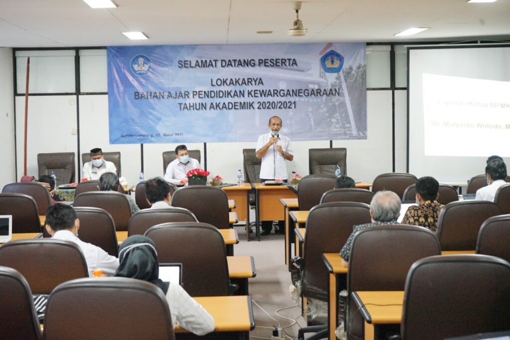 (Unila): Wakil Rektor Bidang Akademik Universitas Lampung (Unila) Prof. Heryandi, M.S., mewakili rektor, membuka acara Lokakarya Bahan Ajar Pendidikan Kewarganegaraan di ruang sidang lantai 4, Rabu, 17 Maret 2021. []