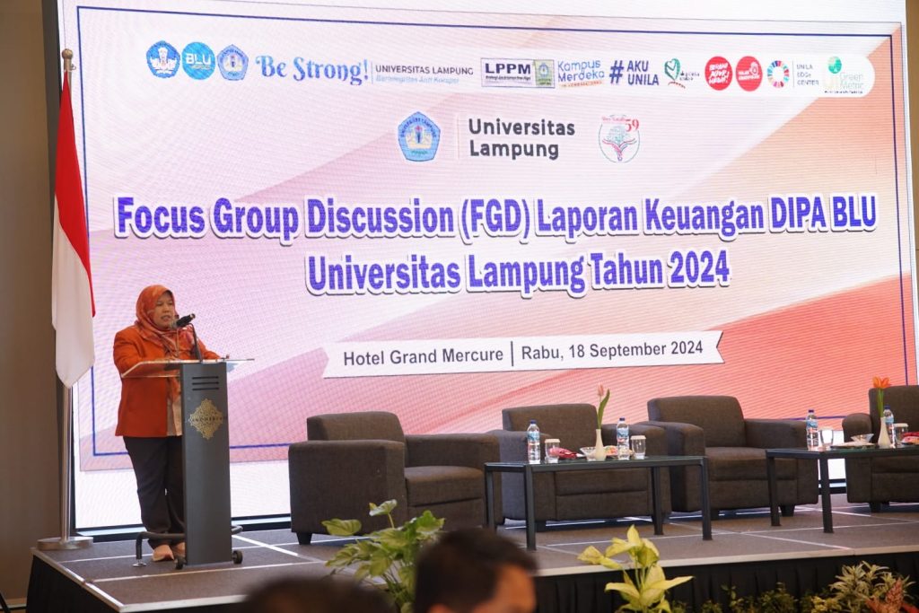 Rektor perempuan pertama Unila, yang juga mantan Ketua LPPM Unila, menekankan pentingnya FGD sebagai wadah diskusi dan berbagi pengetahuan terkait pengelolaan keuangan yang akuntabel.