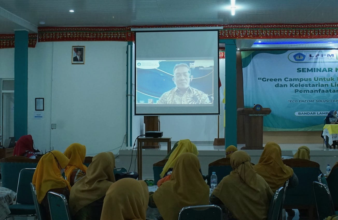 (Unila): Lembaga Penelitian dan Pengabdian kepada Masyarakat (LPPM) bekerja sama dengan Darma Wanita Persatuan (DWP) Universitas Lampung (Unila) menyelenggarakan Seminar Nasional “Green Campus untuk Kampus Berkelanjutan dan Kelestarian Lingkungan dengan Pemanfaatan Eco Enzyme” di Aula Fakultas Pertanian (FP), Rabu, 2 November 2022.