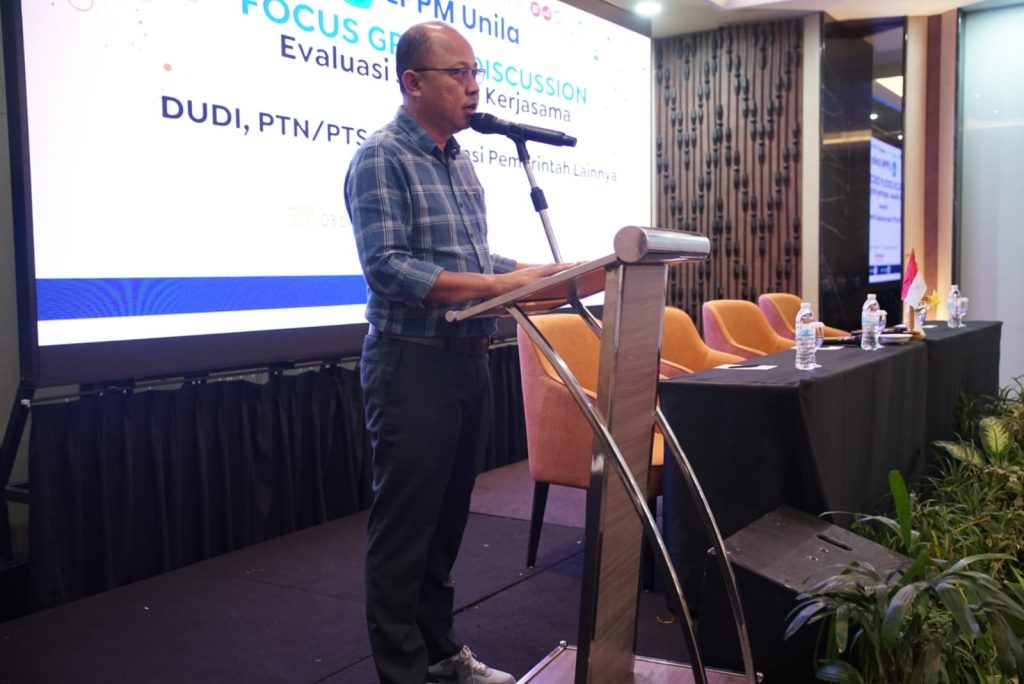 (Unila): Universitas Lampung (Unila) mengadakan focus group discussion (FGD) bertajuk “Evaluasi Jejaring Kerja Sama dengan Dunia Usaha dan Dunia Industri (DUDI), Perguruan Tinggi Negeri (PTN), Perguruan Tinggi Swasta (PTS), dan Instansi Pemerintah Lainnya”, pada Selasa, 3 Desember 2024, di Ballroom Hotel Emersia, Bandar Lampung.