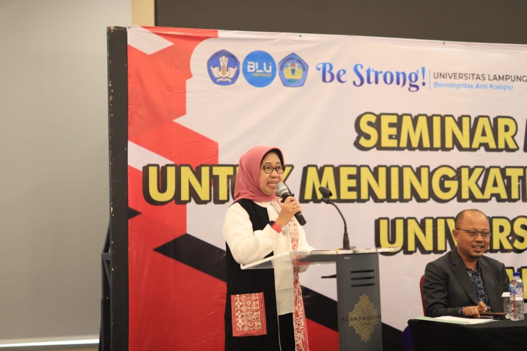 Rektor Unila menyampaikan apresiasi atas terselenggaranya seminar ini sebagai langkah konkret dalam mendukung kesehatan mental para staf.