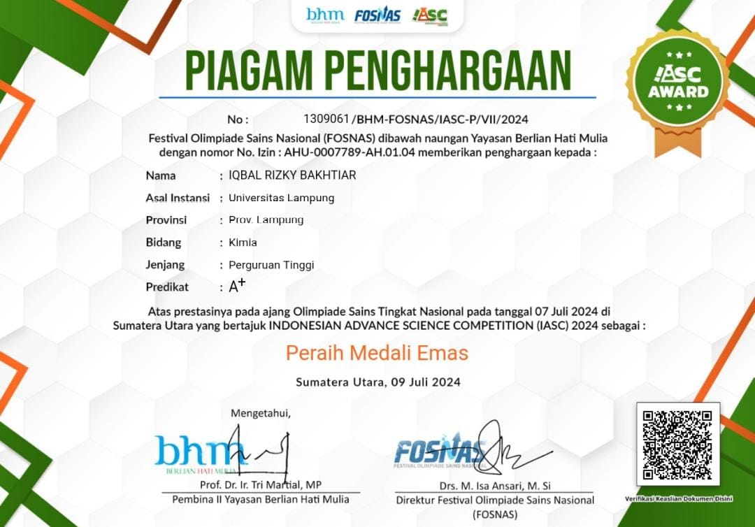 (Unila): Iqbal Rizky Bakhtiar, mahasiswa Agribisnis Universitas Lampung (Unila), berhasil meraih dua medali emas dalam olimpiade tingkat nasional pada Minggu, 7 Juli 2024. Iqbal memanfaatkan waktu liburannya untuk meraih prestasi mengesankan.
