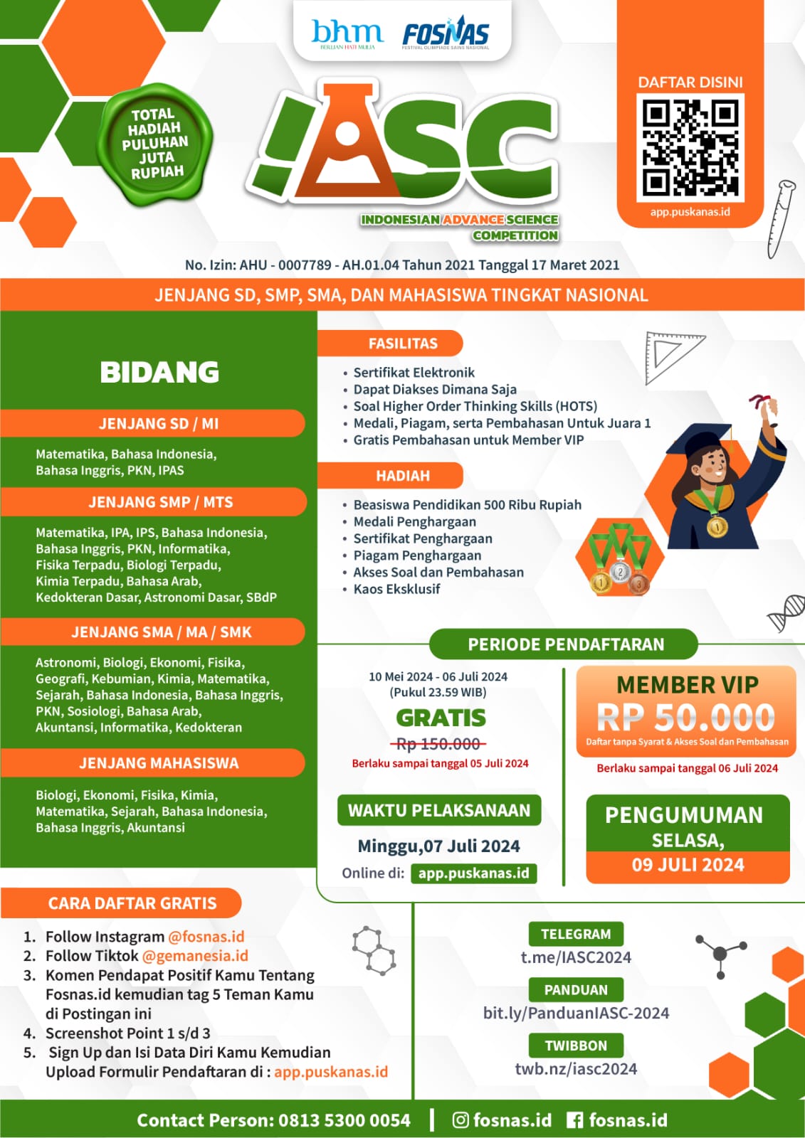 Perlombaan dilangsungkan secara daring, memungkinkan peserta untuk mengakses ujian di mana saja menggunakan gadget atau laptop. Setiap bidang memiliki jadwal tersendiri. Kimia dilakukan pada pukul satu siang dan bahasa Indonesia pada pukul empat sore. Hal ini memungkinkan Iqbal untuk mengikuti dua perlombaan sekaligus.