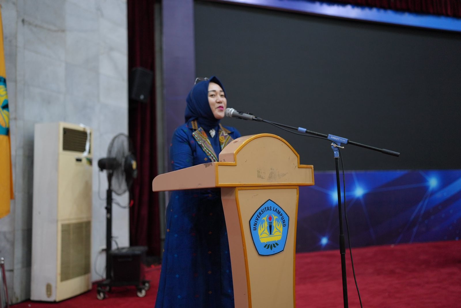 Dr. Anna Gustina Zainal selaku Wakil Rektor Bidang Kemahasiswaan dan Alumni dalam sambutannya menyampaikan pentingnya peran mahasiswa untuk turut memberikan semangat juang yang tinggi dan tidak apatis terhadap keadaan di sekitarnya.