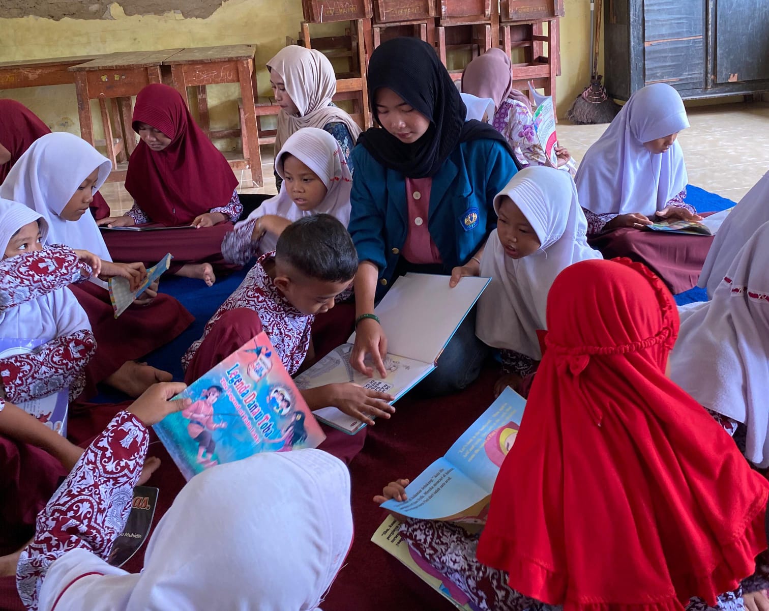 Dengan tema “Mantra Buku: Merangsang Minat Baca untuk Masa Depan Cerah”, kegiatan ini menawarkan berbagai aktivitas literasi seperti membaca buku cerita bersama, belajar bahasa isyarat, bermain games terkait lingkungan sekitar, dan pembagian buku cerita untuk anak-anak SDN Cugung.