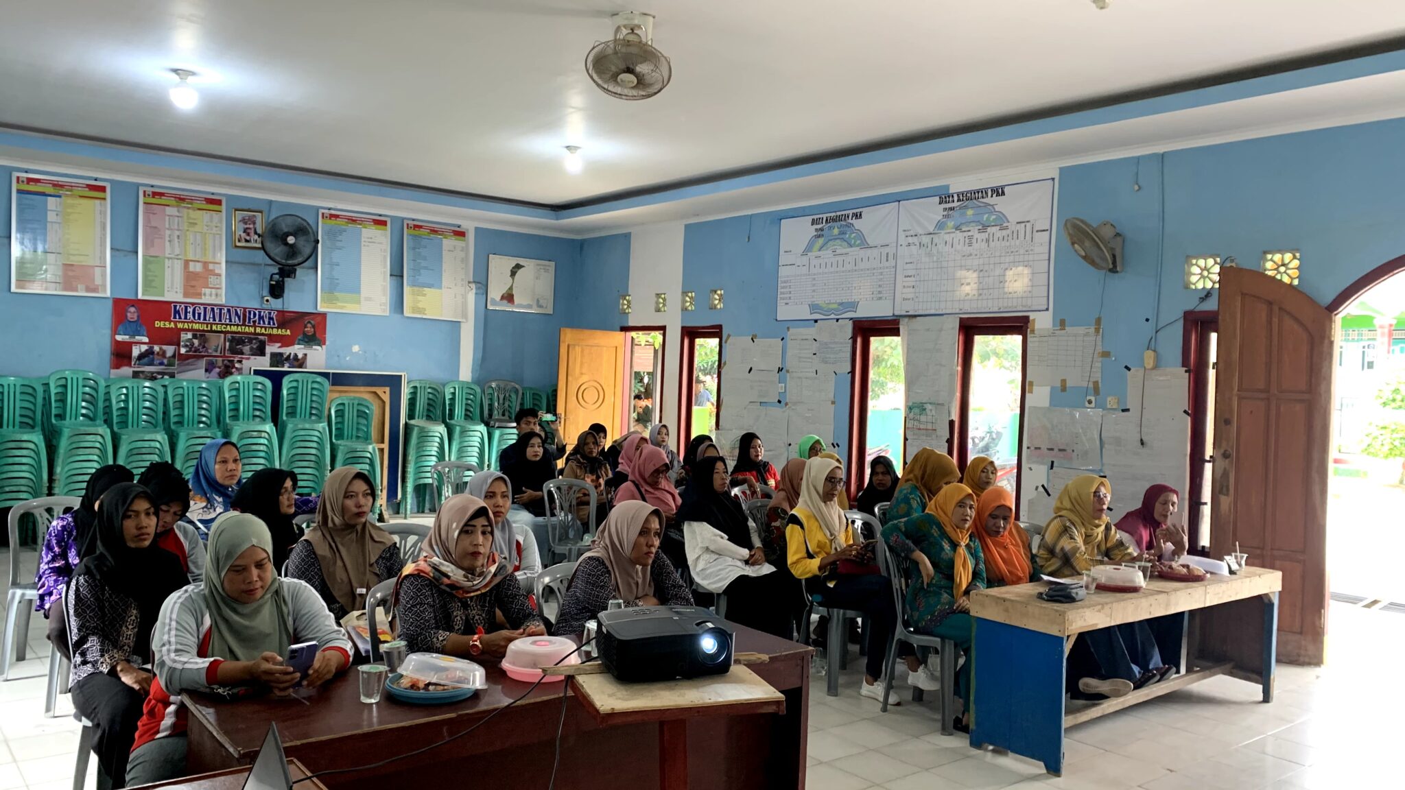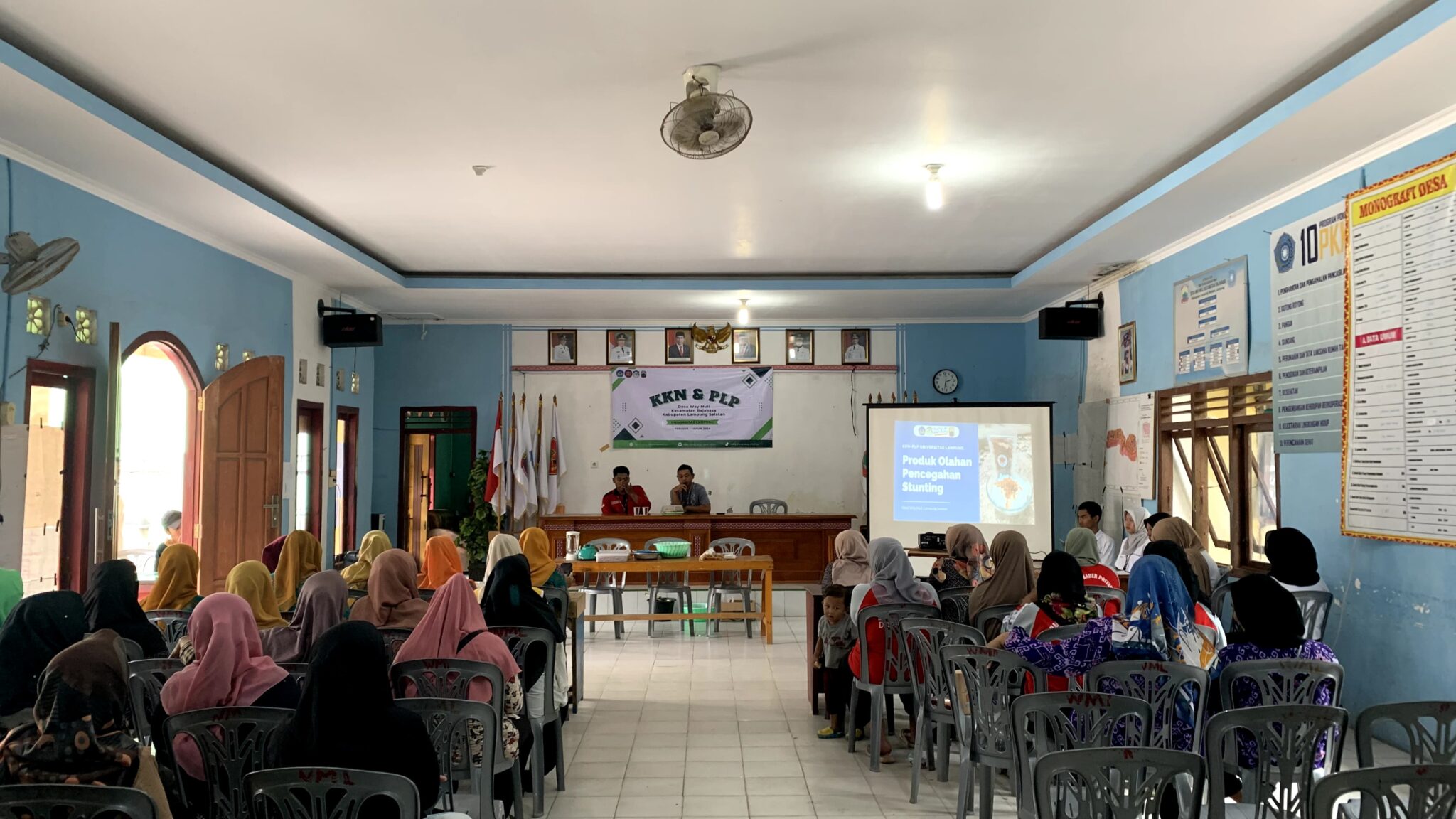 Sosialisasi stunting dan pembuatan produk olahan pencegah stunting dihadiri kelompok Pemberdayaan Kesejahteraan Keluarga (PKK), kader posyandu, anggota Klub Jantung Sehat (KJS), dan perangkat desa. Digelar di Balai Desa Way Muli, Kecamatan Rajabasa, Lampung Selatan, pada Jumat, 26 Januari 2024.