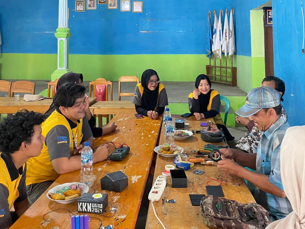Aliran arus yang dialirkan ke baterai dilanjutkan ke perangkat modul step up dan sensor cahaya agar lampu dapat otomatis hidup di malam hari dan mati saat pagi hari. Terakhir terdapat penyambungan arus ke lampu LED agar lampu siap bersinar cerah. Program kerja turut dihadiri dan diikuti masyarakat umum Desa Tanjung Wangi.