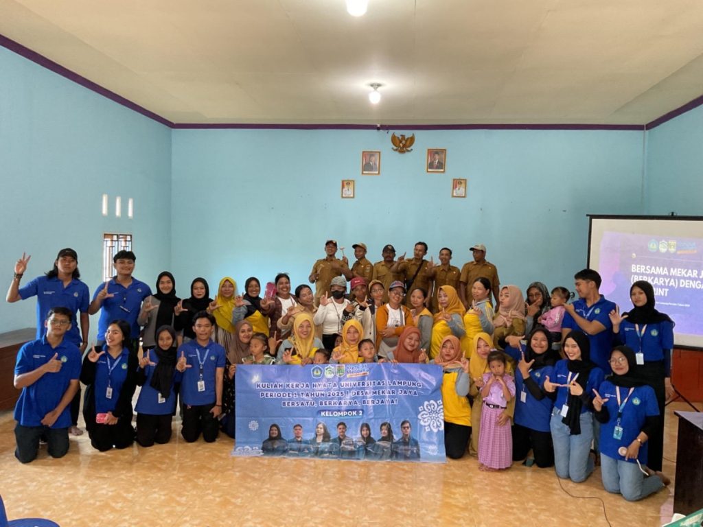 (Unila): Tim Kuliah Kerja Nyata (KKN) Desa Mekar Jaya Universitas Lampung (Unila) adakan program eco printing ramah lingkungan dengan memanfaatkan daun dan bunga, di Balai Desa Mekar Jaya, Senin, 20 Januari 2025.