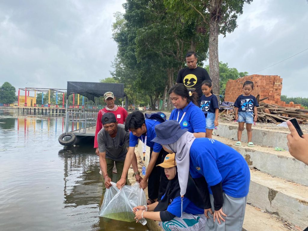 Kegiatan dilanjutkan dengan penanaman 40 pohon tabebuya dan pucuk merah serta pelepasan 1000 bibit ikan nila oleh kelompok mahasiswa KKN dan perangkat desa ke Danau Tirtagangga.