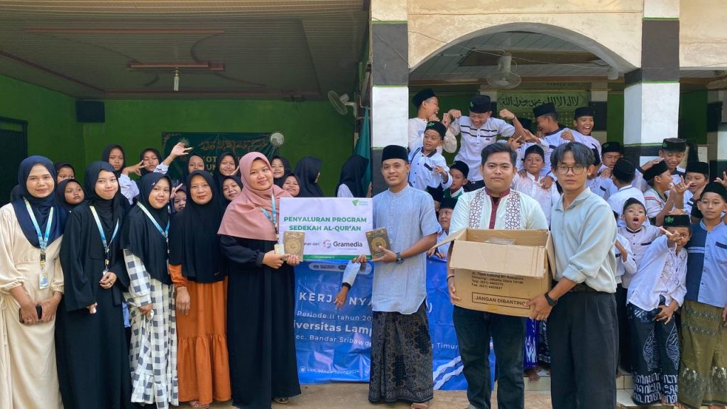(Unila): Lima puluh Alquran dan 25 Iqro dibagikan kepada para santri di TPA Babussalam, Desa Bandar Agung, Kabupaten Lampung Timur, pada Kamis, 25 Juli 2024.
