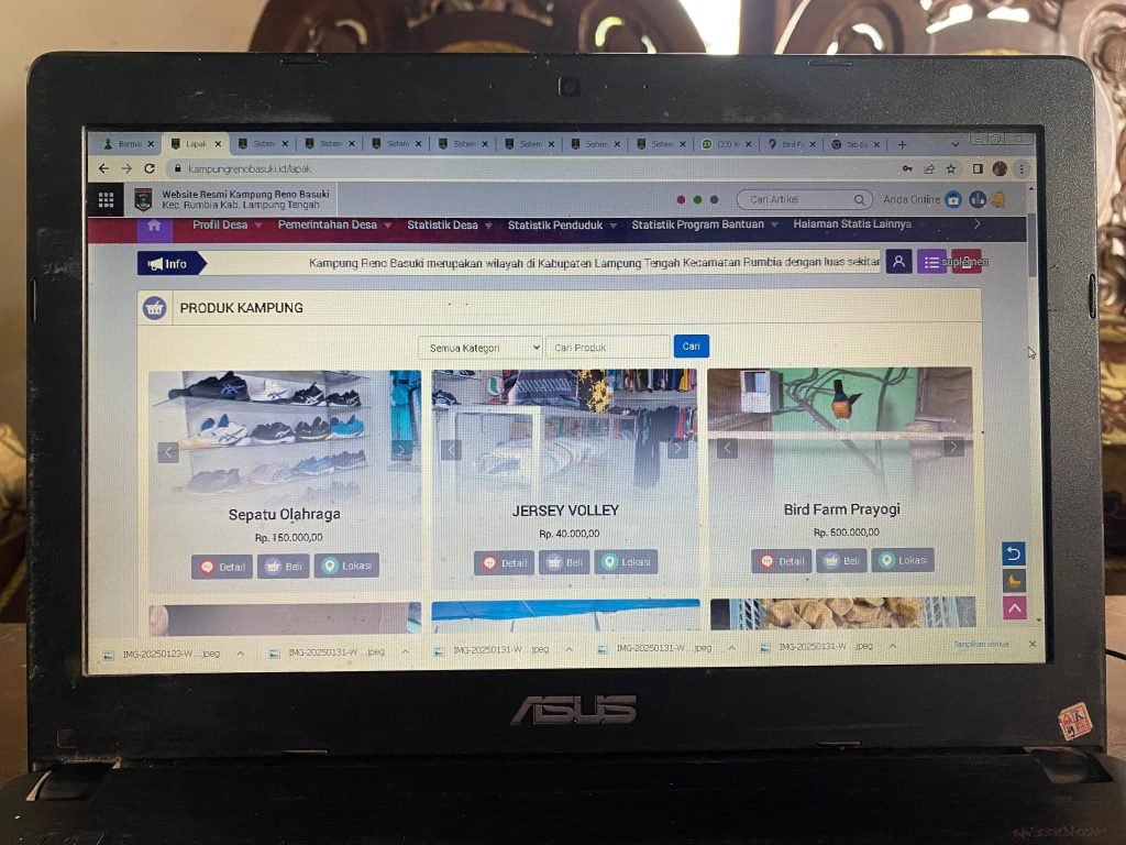 Etalase digital ini menyediakan platform bagi UMKM untuk memasarkan produknya di dalam website resmi masing – masing kampung untuk memasarkan produk mereka secara online, sehingga dapat menjangkau lebih banyak konsumen, baik di dalam maupun luar daerah. Menyajikan produk seperti kerajinan tangan, makanan dan hasil pertanian yang ada di Rumbia untuk dapat diakses dengan lebih mudah.