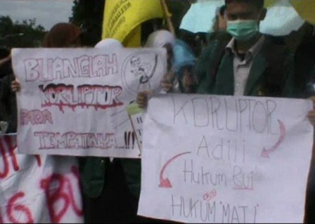 (Unila) : Korupsi yang semakin menjadi-jadi di negeri ini membuat mahasiswa sebagai penerus bangsa harus terus meneriakkan yel-yel antikorupsi. Seperti yang dilakukan gabungan mahasiswa Universitas Lampung (Unila) dalam upaya menolak perilaku korupsi di Indonesia, khususnya di Lampung.