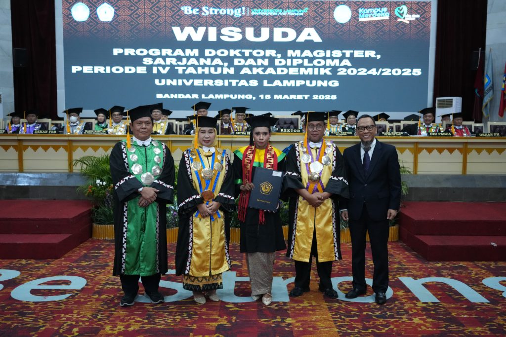 (Unila): Universitas Lampung (Unila) kembali melahirkan lulusan berprestasi yang menginspirasi. Maria Mesly, perempuan asal Papua, resmi menyandang gelar sarjana setelah menyelesaikan studinya di Fakultas Pertanian, Jurusan Teknologi Hasil Pertanian.