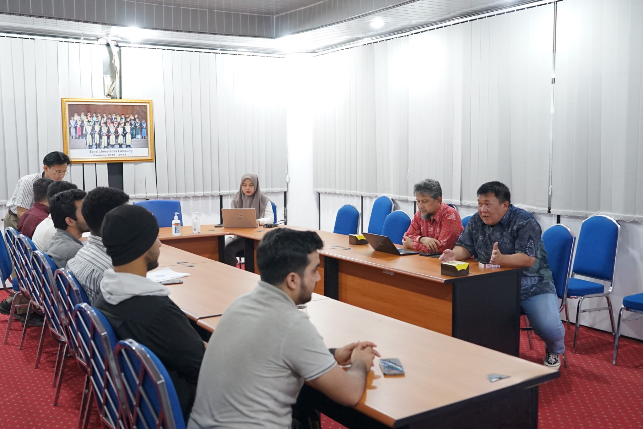 Kali ini monev diikuti delapan mahasiswa asing Unila yang mempresentasikan perkembangan studinya selama berkuliah di Unila.