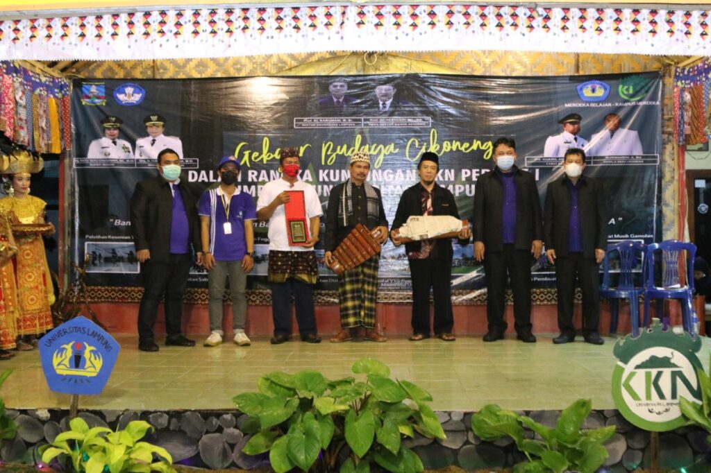 Selanjutnya acara nonformal, dibuka dengan pemaparan produk keripik pisang dan sabun serta mencicipi makanan khas Cikoneng dan keripik pisang. Acara dilanjutkan dengan pemutaran video kilas balik KKN periode I Unila diiringi pembacaan puisi, penampilan musik tradisional Gamolan, dan penampilan tari bedana. [Humas/Angel]