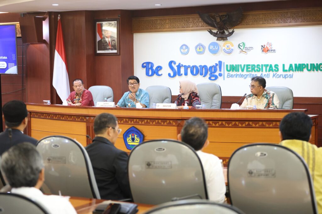 (Unila): Sinergi antara perguruan tinggi dan pemerintah daerah harus mampu menghadirkan manfaat nyata bagi masyarakat. Penegasan tersebut disampaikan Rektor Universitas Lampung (Unila), Prof. Dr. Ir. Lusmeilia Afriani, D.E.A., IPM., ASEAN Eng., dalam momentum penandatanganan Nota Kesepahaman (MoU) yang berlangsung di ruang sidang utama rektorat Unila, Jumat, 6 Februari 2026.