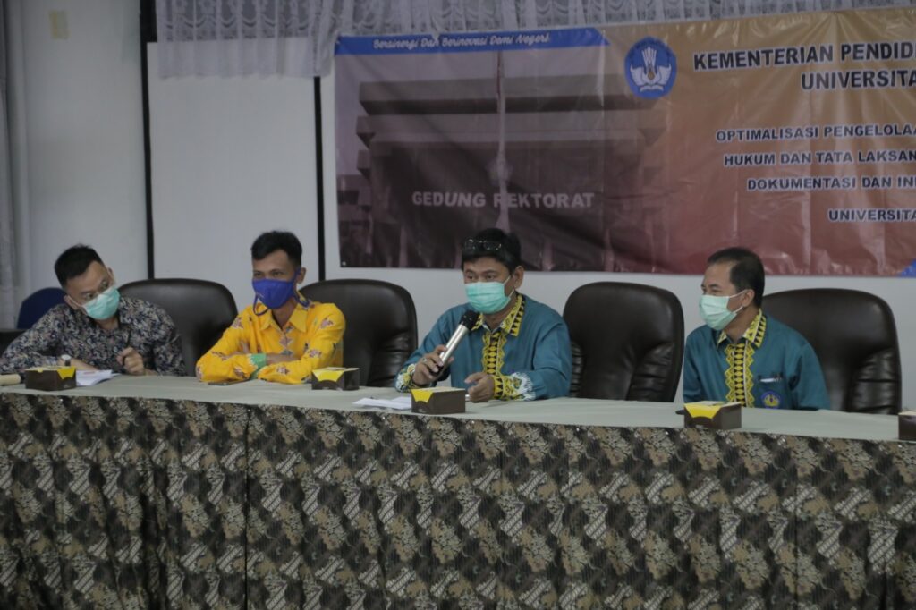 Agenda yang dipusatkan di ruang sidang lantai 4 Rektorat Unila ini dibuka Wakil Rektor Bidang Umum dan Keuangan Dr. dr. Asep Sukohar, M.Kes., didampingi Kepala Biro Umum dan Keuangan Sariman, S.H.