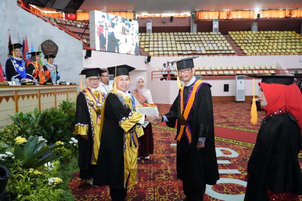 (Unila): Prof. Dr. Nurlaksana Eko Rusminto, M.Pd., Guru Besar dalam Ranting Ilmu/Kepakaran Pembelajaran Bahasa Indonesia Kontekstual, membahas judul Kontekstual dan Peranannya dalam Peristiwa Tutur Sebuah Kajian Penggunaan Bahasa Indonesia Kontekstual dalam Orasi Ilmiah pengukuhan Jabatan Guru Besar Tetap Universitas Lampung (Unila), pada Senin, 27 April 2026, di GSG Unila.