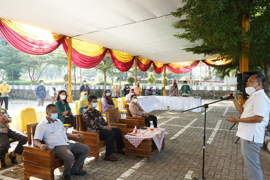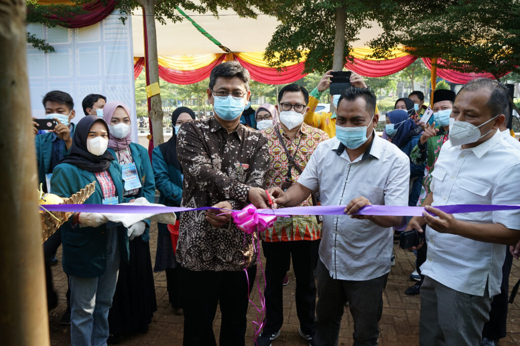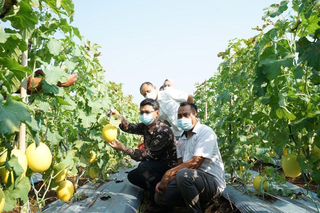 Panen raya batch II Agrowisata Unila dibuka oleh Wakil Rektor Bidang Umum dan Keuangan Unila Prof. Dr. dr. Asep Sukohar, S.Ked., M.Kes., dengan melakukan pengguntingan pita dan panen melon.