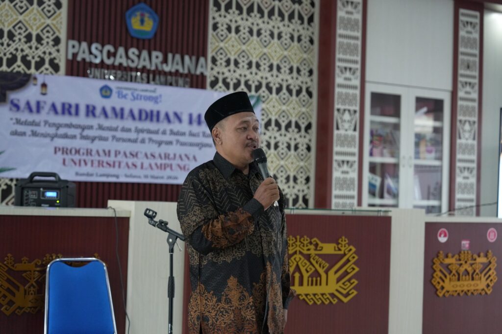 (Unila): Pascasarjana Universitas Lampung (Unila) menggelar Safari Ramadan 1447 Hijriah dengan tema “Melalui Pengembangan Mental dan Spiritual di Bulan Suci Ramadan akan Meningkatkan Integritas Personal di Program Pascasarjana Unila”. Kegiatan berlangsung di Lobby Gedung Pascasarjana Unila, Selasa, 10 Maret 2026.