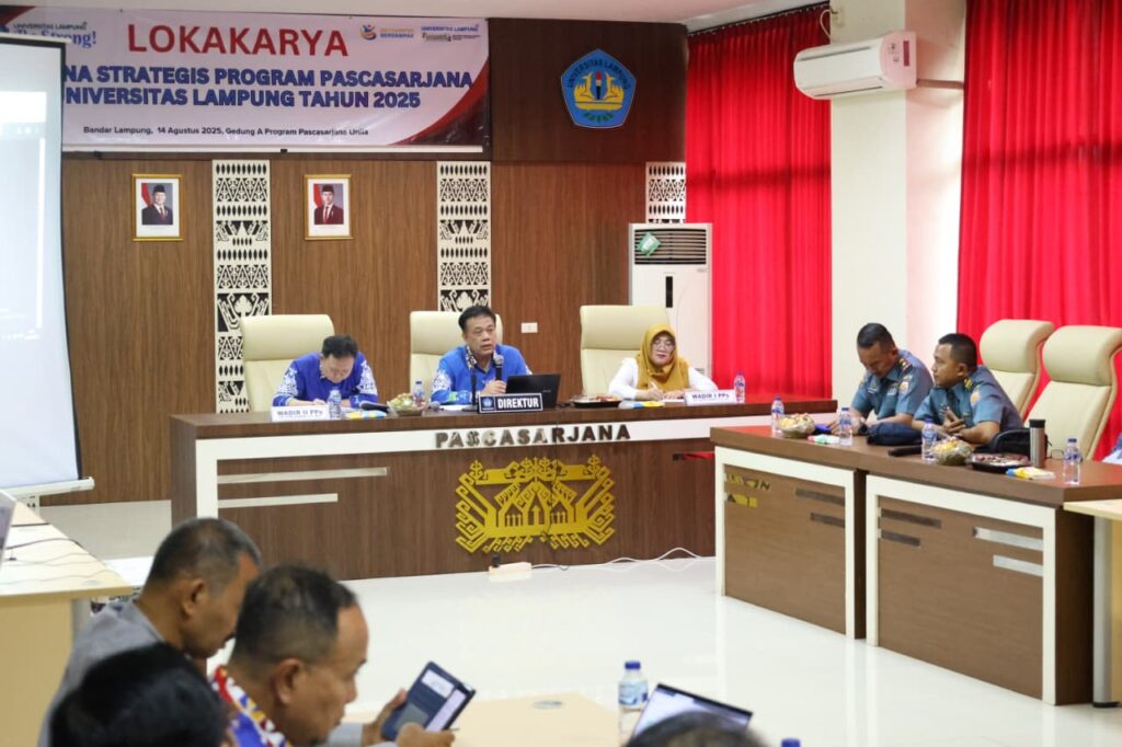 (Unila): Program Pascasarjana Universitas Lampung (Unila) menggelar Lokakarya Rencana Strategis (Renstra) Pascasarjana Unila tahun 2025–2029, Kamis, 14 Agustus 2025, di Aula Pascasarjana Unila.