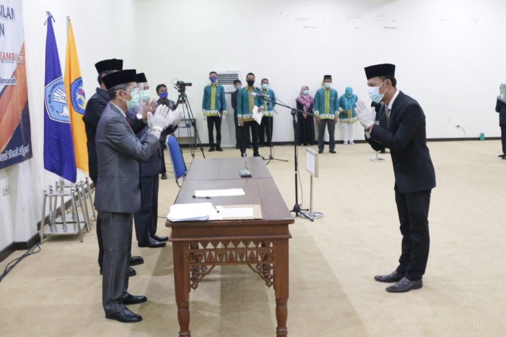 (Unila): Rektor Universitas Lampung (Unila) Prof. Dr. Karomani, M.Si., kembali melakukan pelantikan jabatan fungsional kepada 20 pejabat administrasi di lingkungan kampus setempat, Kamis (17/12/2020) sore.