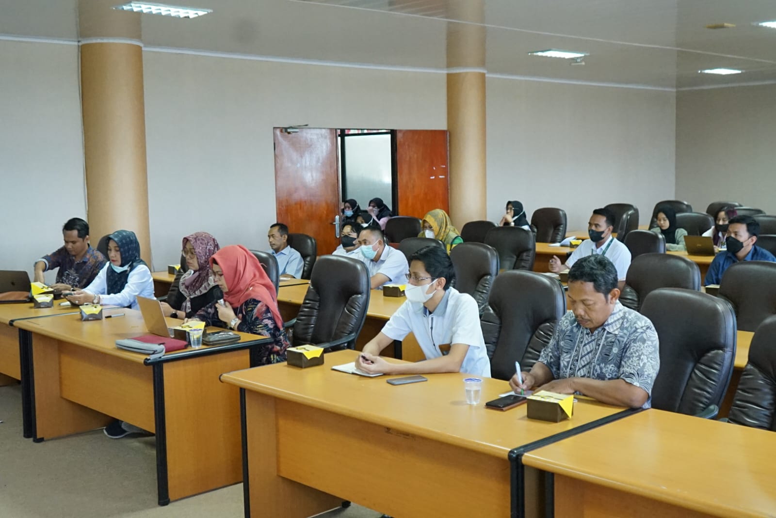 Kegiatan ini turut dihadiri kepala biro umum dan keuangan, koordinator bagian kepegawaian BUK, koordinator bagian informasi dan humas, serta tenaga kependidikan di lingkungan rektorat dan fakultas Unila. [Humas/Daffa]
