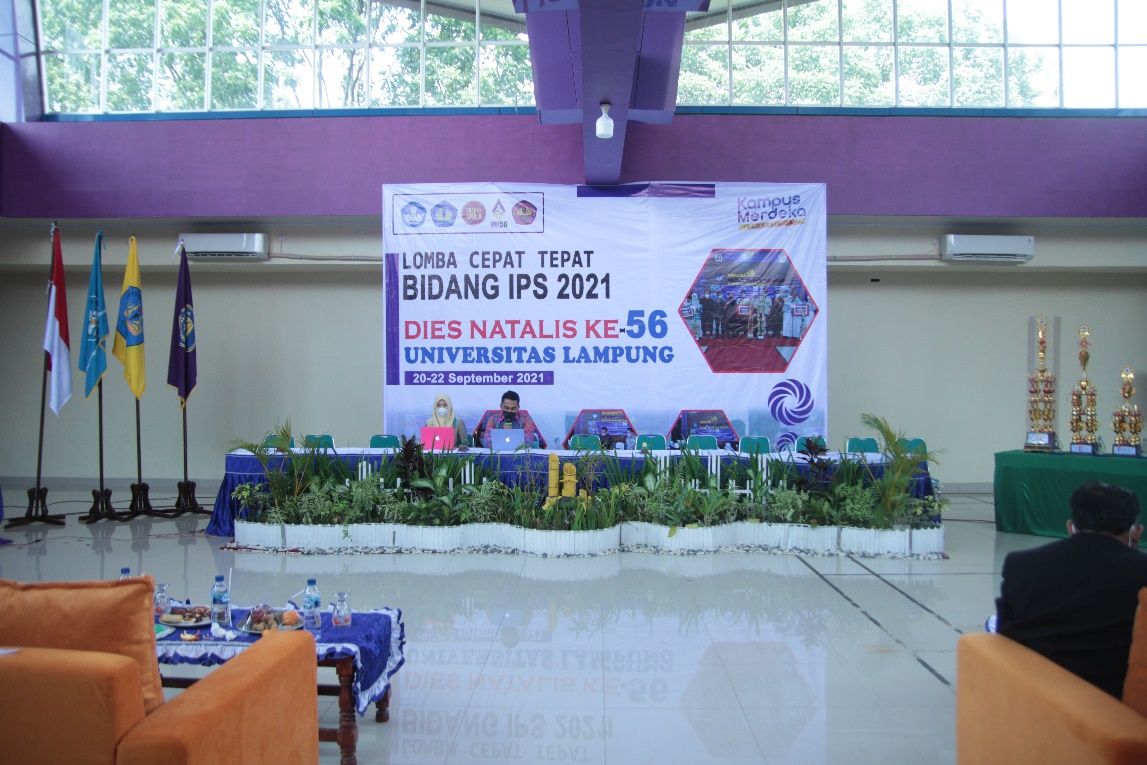 (Unila): Dalam rangka peringatan Dies Natalis ke-56 Universitas Lampung (Unila) menggelar Lomba Cepat Tepat (LCT) Bidang Ilmu Pengetahuan Sosial (IPS) tingkat SMA se-Provinsi Lampung bertajuk ”Mewujudkan Genarasi Muda yang Unggul, Inovatif, dan Kompetitif”, Senin, 20 September 2021.