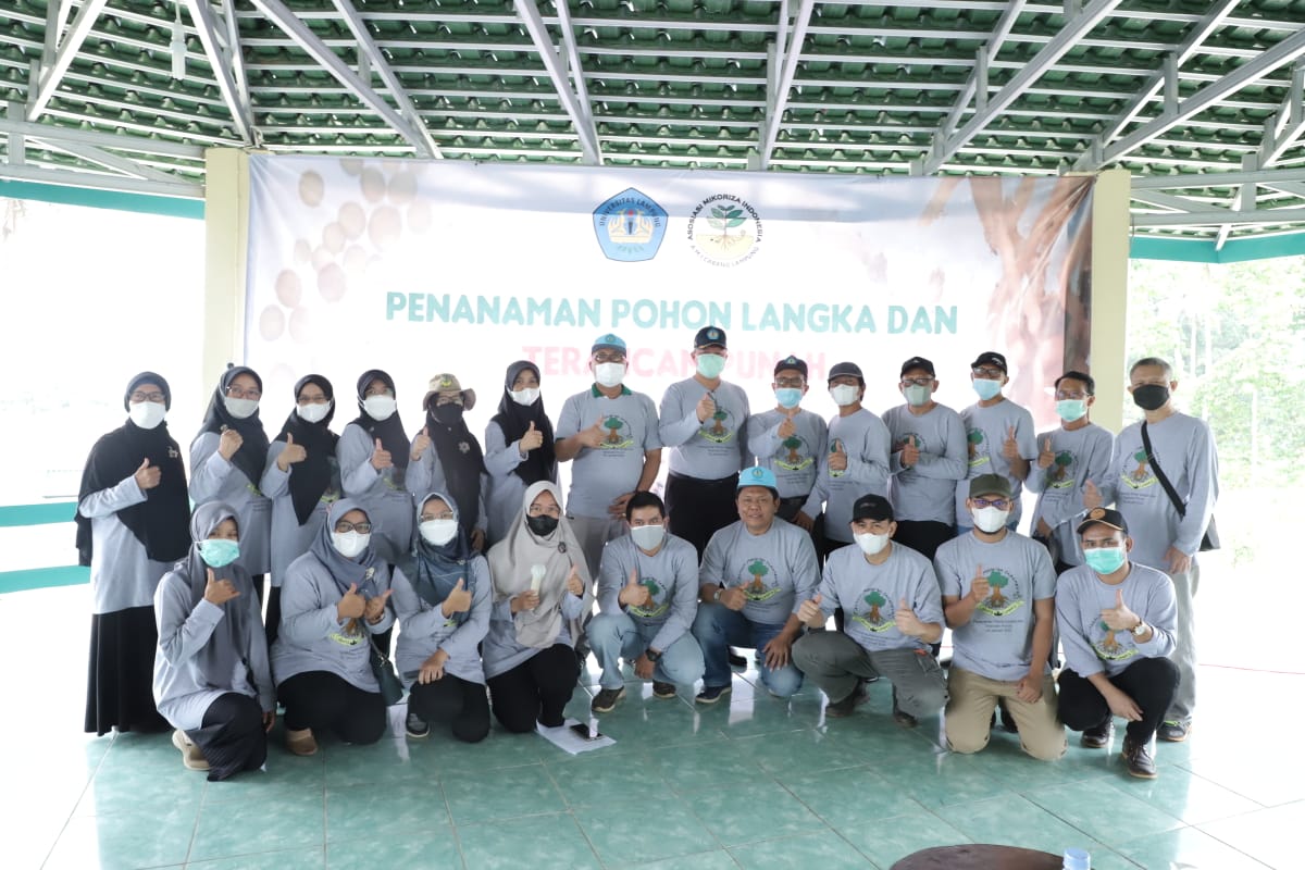 (Unila): Wakil Rektor Bidang PKTIK Universitas Lampung (Unila) Prof. Ir. Suharso, S.Si., Ph.D., didampingi dekan fakultas pertanian beserta jajaran wakil dekan dan ketua jurusan melaksanakan Penanaman Tanaman Langka dan Terancam Punah di Laboratorium Lapang Terpadu Fakultas Pertanian Unila, Sabtu, 29 Januari 2022.
