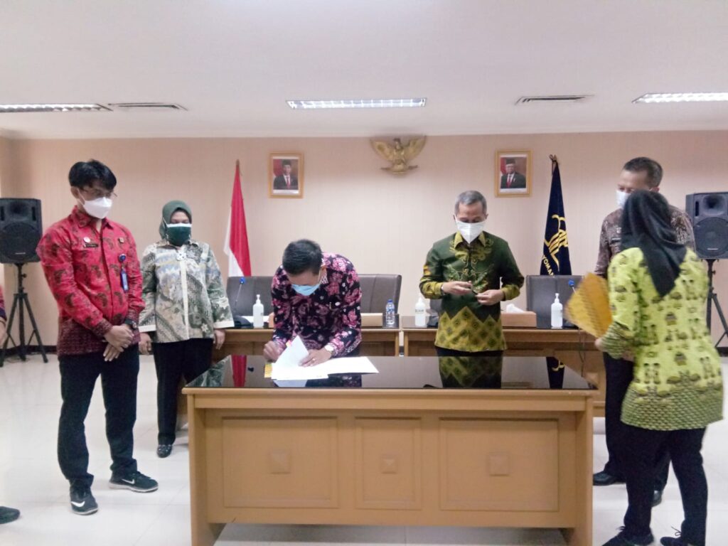 Penandatanganan MoU dilakukan di Kantor Kemenkumham RI, Rabu pagi, 3 September 2021. Turut hadir Kepala UPT Pengembangan Kerja sama dan Layanan Internasional (PKLI) Unila Dr. Ayi Ahadiat, S.E., M.B.A., mendampingi Rektor Unila. []