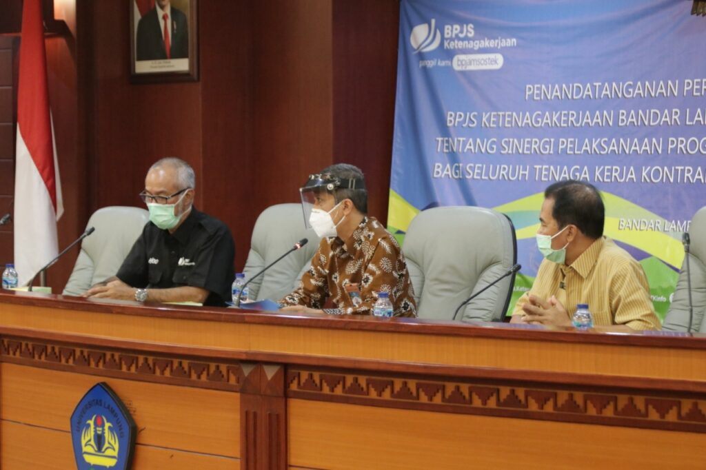 Penandatanganan dilakukan di ruang sidang utama lantai 2 Rektorat, Jumat, 26 Februari 2021, disaksikan jajaran pimpinan di lingkungan Kampus Hijau beserta perwakilan BPJS Ketenagakerjaan Cabang Bandarlampung.