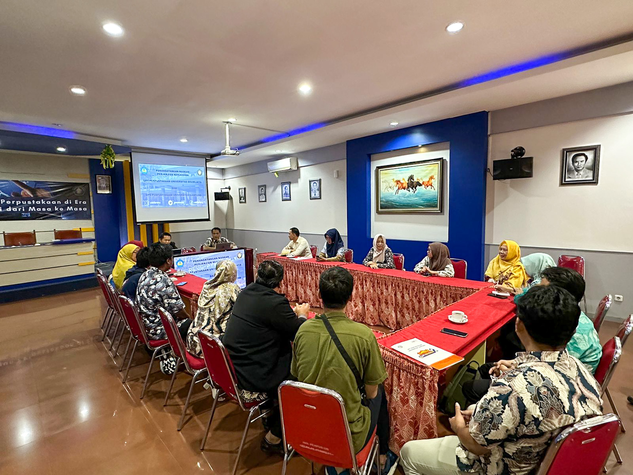Usai penandatanganan, dilanjutkan dengan diskusi mengenai rencana kerja sama yang akan dilaksanakan. Salah satu topik yang dibahas yaitu inovasi layanan pendampingan mahasiswa dalam menulis skripsi, tesis, dan disertasi untuk penelusuran bahan pustaka.