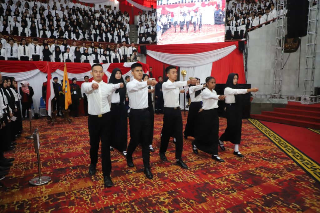 PKKMB tingkat universitas dilakukan secara luring di Gedung Serbaguna (GSG) Unila dan secara daring melalui aplikasi Zoom serta kanal Youtube Official Unila.
