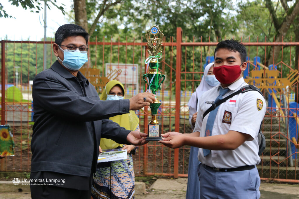 Penyerahan piala dan sertifikat yang dilakukan di depan Kebun Rusa Unila, Selasa, 2 Februari 2021 ini diberikan kepada Gandis Ayu Listyaningrum sebagai Juara I dan Ahmad Aulidi Yufrizal sebagai Juara II dari SMAN 7 Bandarlampung.