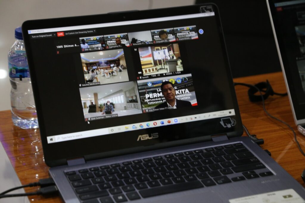 Turut hadir Rektor Untirta Prof. Dr. Fatah Sulaiman, S.T., M.T., Wakil Rektor Bidang Akademik Unila Prof. Dr. Heryandi, S.H., M.S., jajaran pimpinan di lingkungan Universitas Lampung, jajaran pimpinan Untirta, beserta mahasiswa perwakilan kedua universitas yang tergabung secara daring.