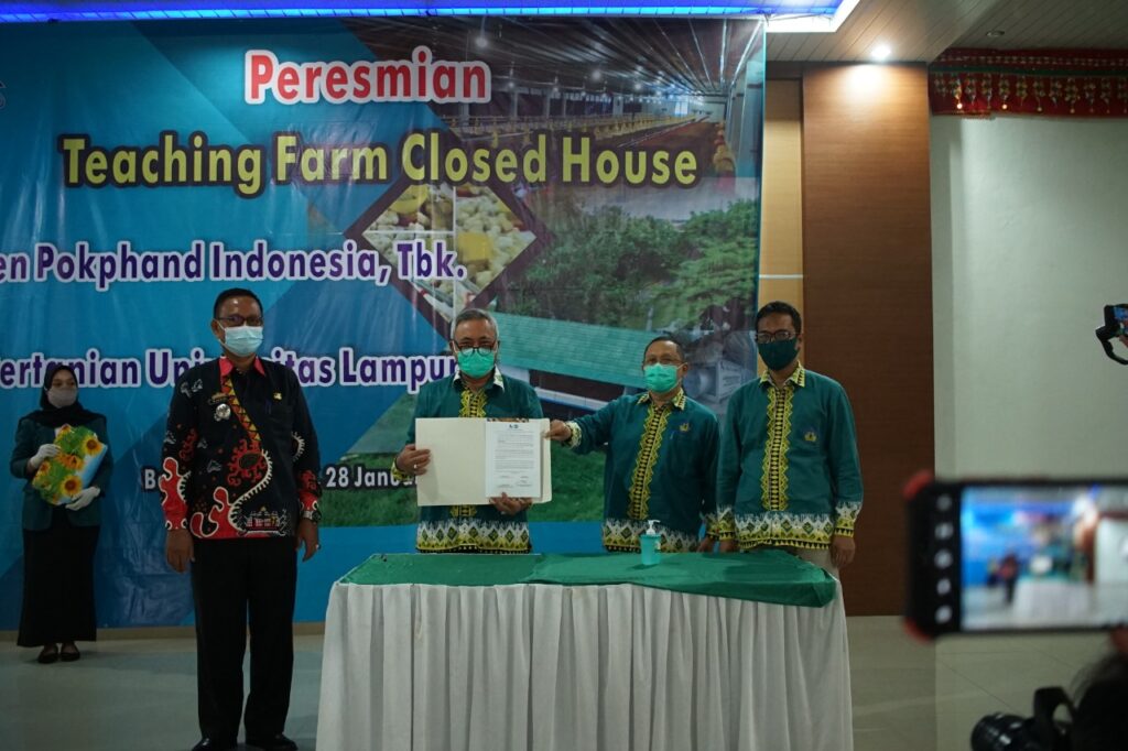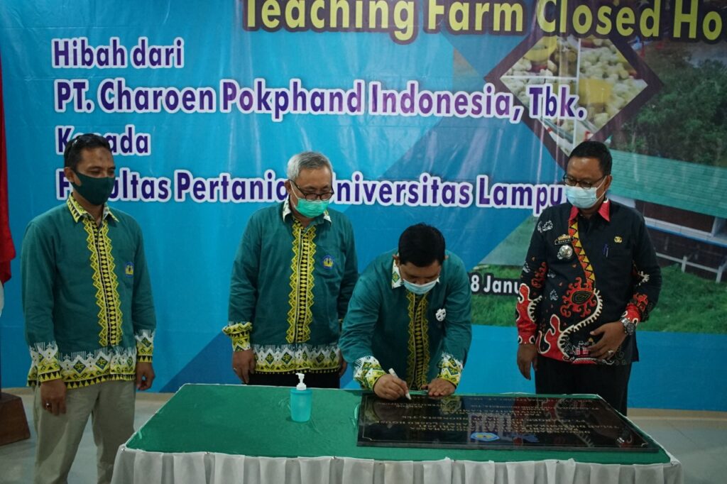 (Unila): Wakil Rektor Bidang Kemahasiswan dan Alumni Universitas Lampung (Unila) Prof. Dr. Yulianto, M.S., mewakili rektor menghadiri Peresmian Teaching Farm-Closed House hibah dari PT. Charoen Pokphand Indonesia (CPI) Tbk., di Aula FP Unila, Kamis, 28 Januari 2021.